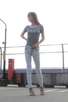 を腰より低い位置にセットしてあおり気味に撮影して、少しでも足が長く見える様に工夫しています(泣)