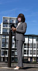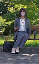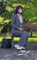 パンツスーツバージョン。パンツスーツの女性に憧れて3点セットで買ってた。この頃はまだ眼鏡(ダテ眼鏡だけど)かけてたなぁ。外ってこともあって、髪がボサボサ。