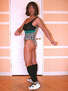 ストライプ柄のレオタとネイビーのレッグウォーマーは正にインストラクターです!