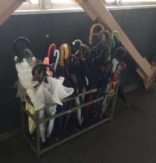 某駅の忘れ物の傘置き場です。